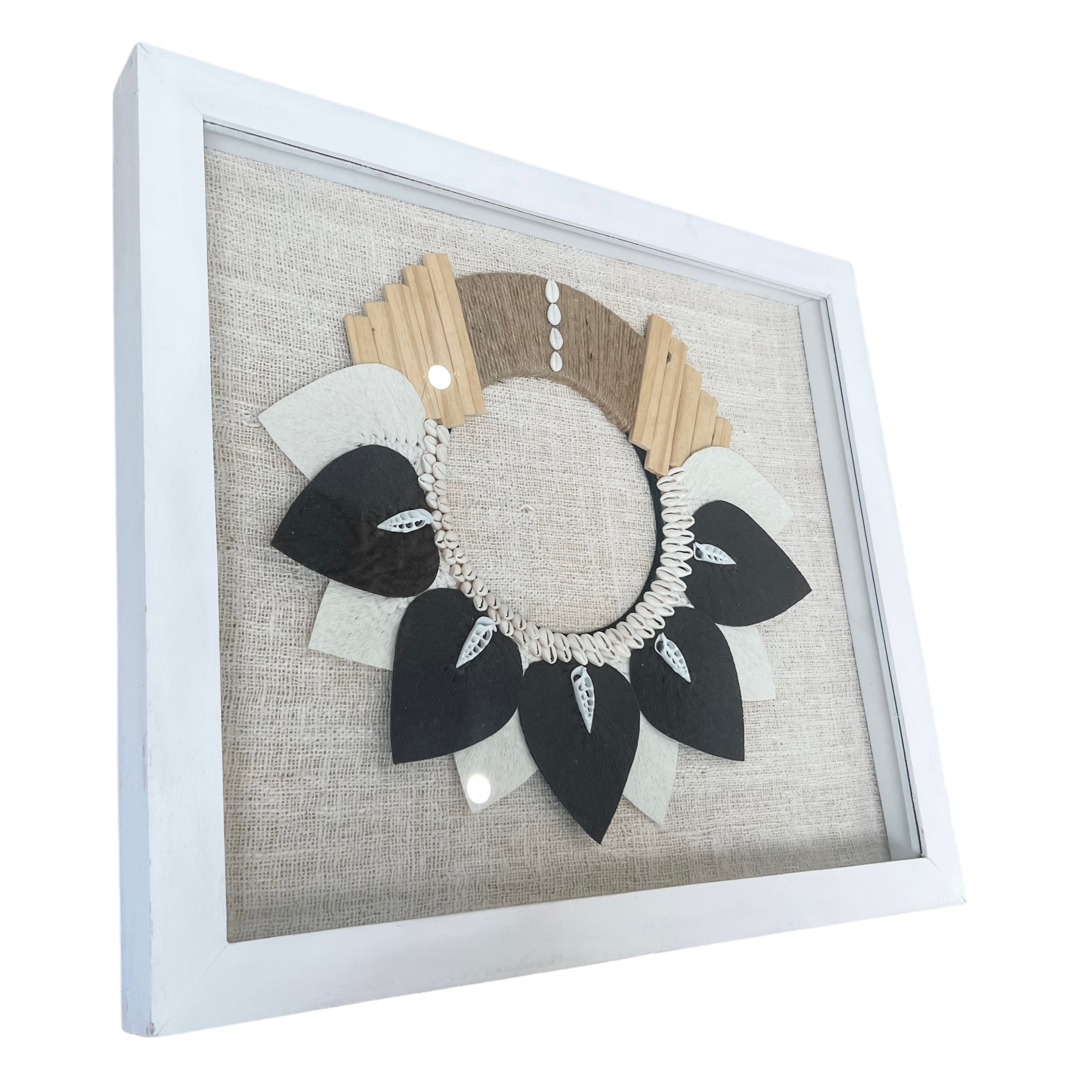 White Framed Tribal Necklace Wall Art.An elegant, coastal decor piece.