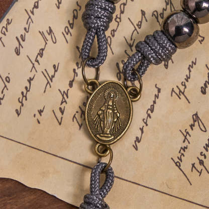 You will receive the Miraculous Medal & Crucifix of 8 mm Round Silver Black Gallstone Nylon Cord Rosary: protect yourself and your loved ones from negative energy.