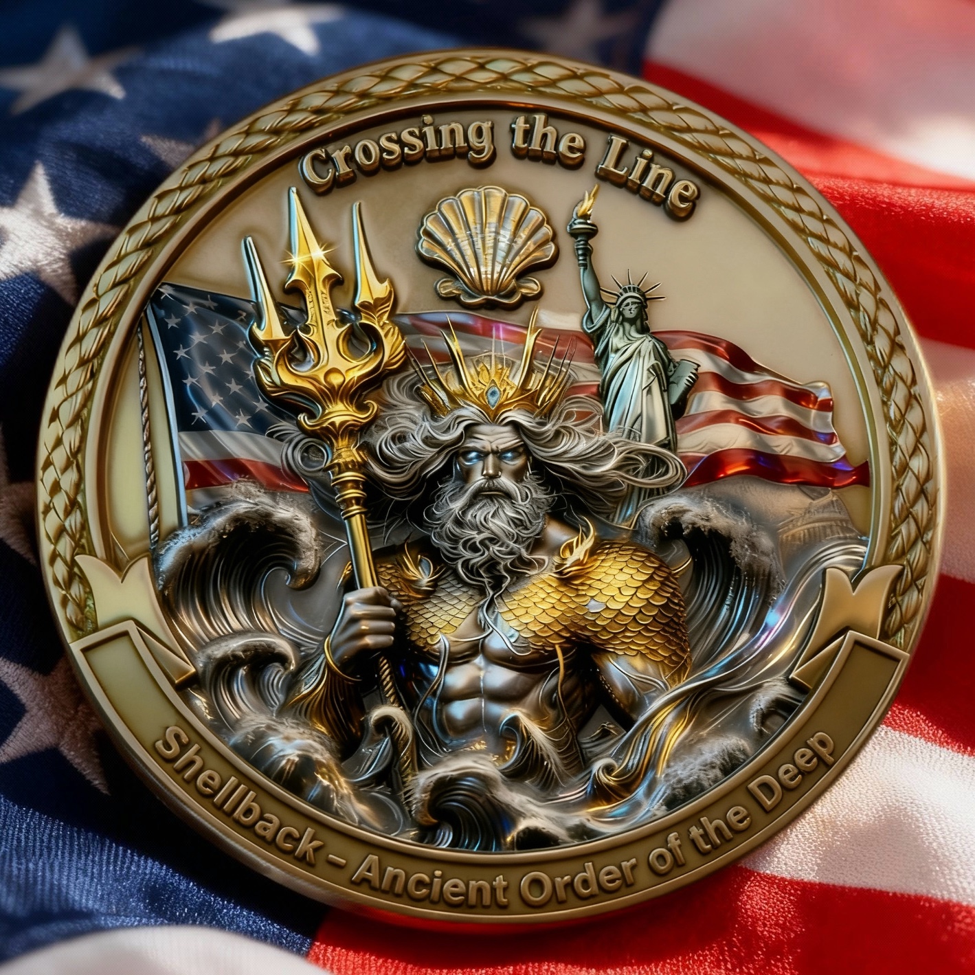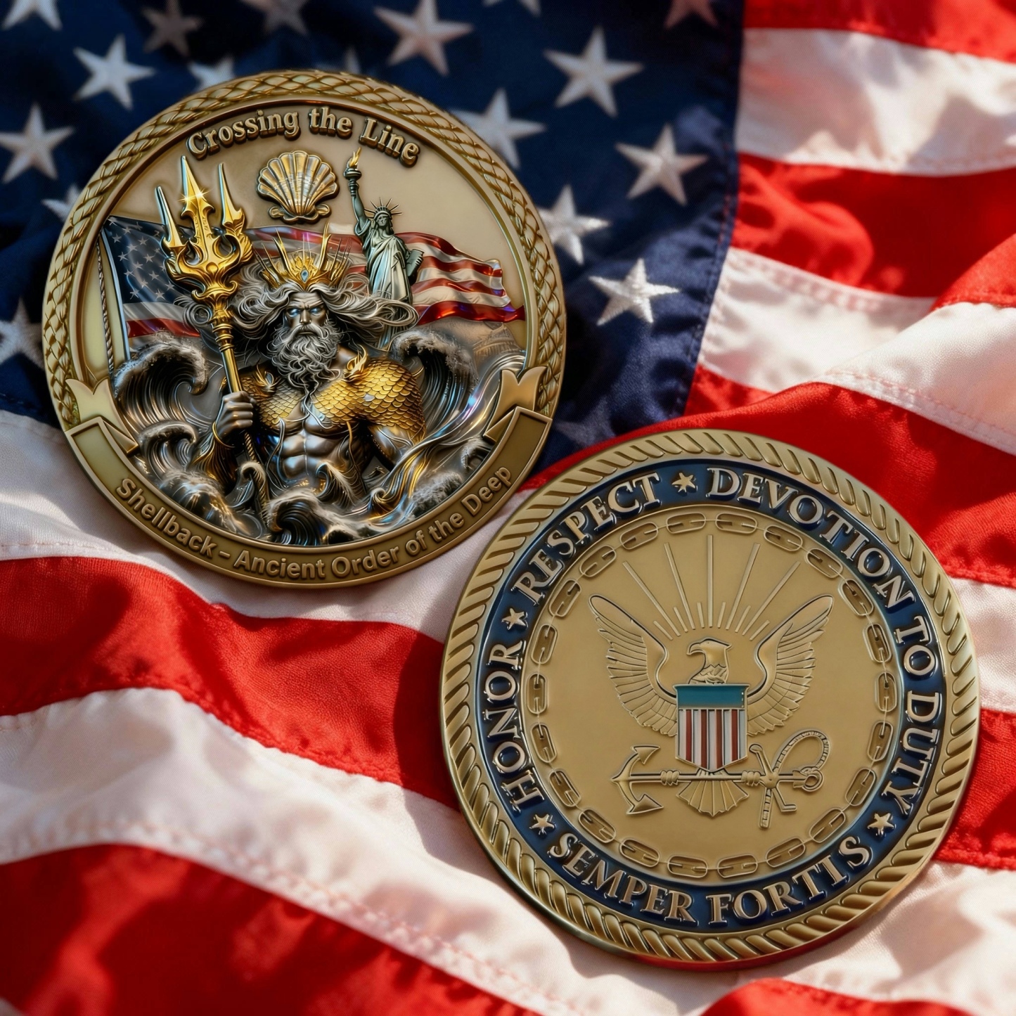 Every Shellback “Crossing the Line” – Ancient Order of the Deep Challenge Coin is not just produced — it’s crafted with passion, precision, and deep respect for America’s 250 years of freedom and unity.