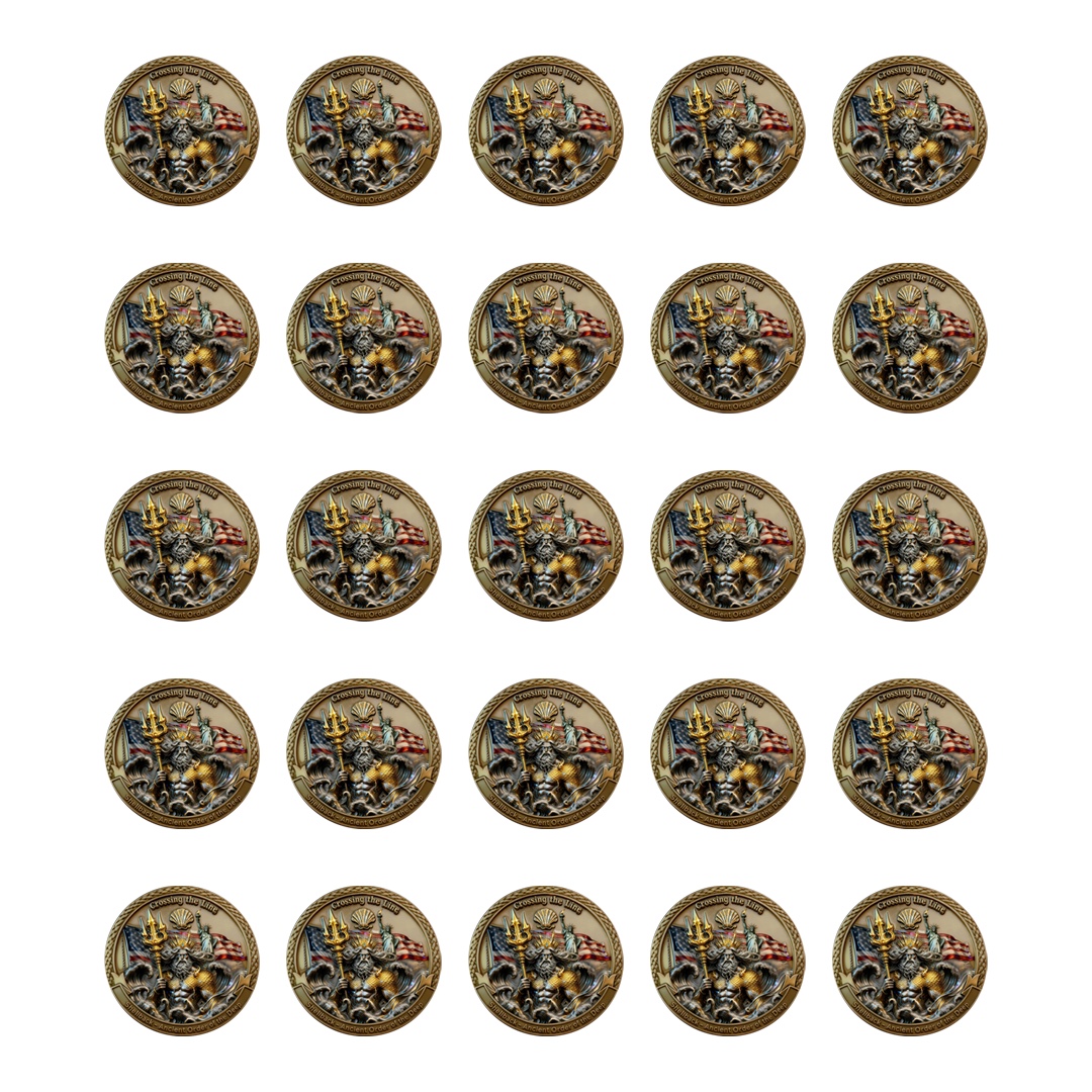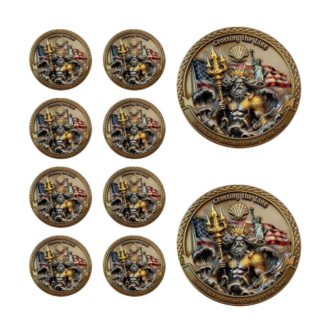 This deeply meaningful commemorative coin celebrates one of the most legendary maritime rites of passage — the Shellback / Crossing the Line ceremony. Symbolizing a Sailor’s transformation from “Pollywog” to “Shellback,” this coin stands as a powerful emblem of heritage, endurance, and respect for the sea. Expertly crafted with exceptional detail, it is both a collector’s item and a timeless symbol of naval pride.