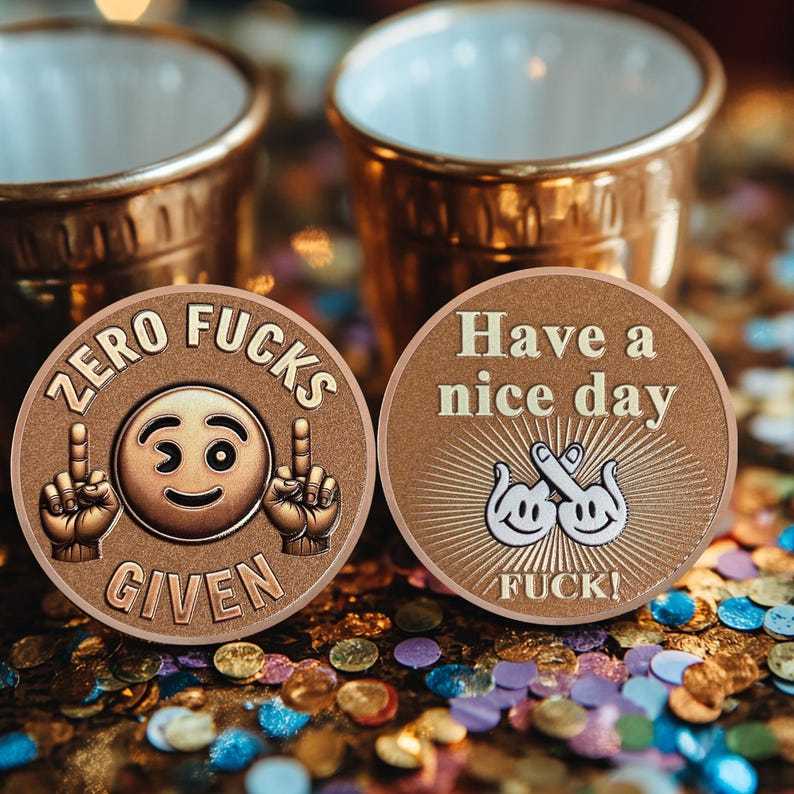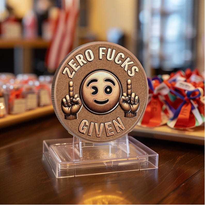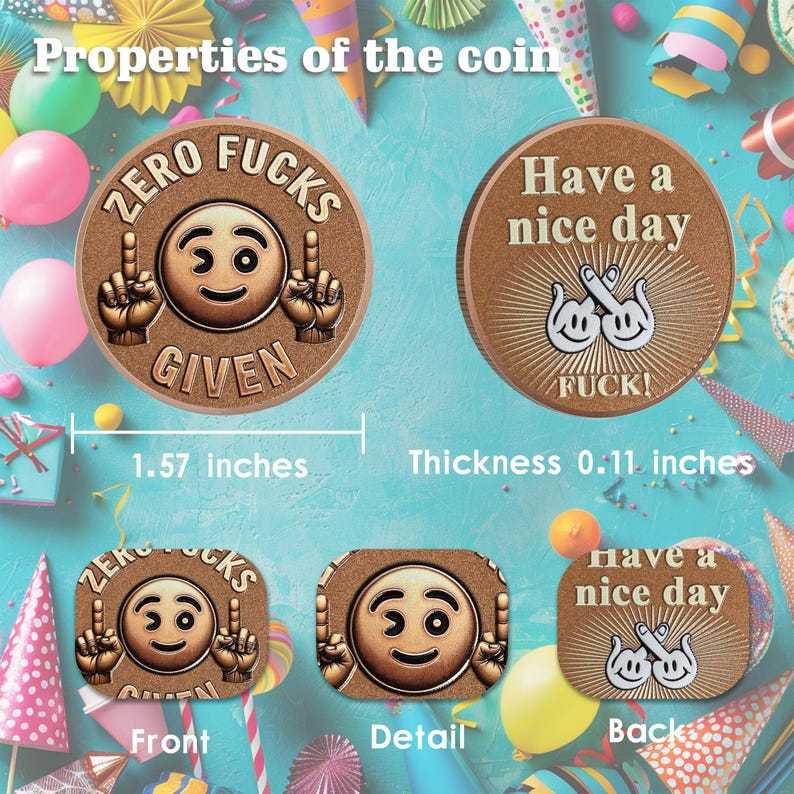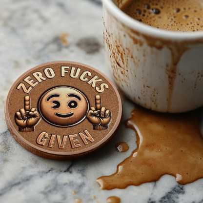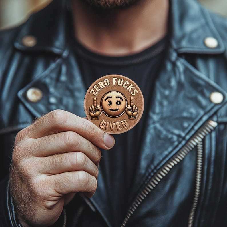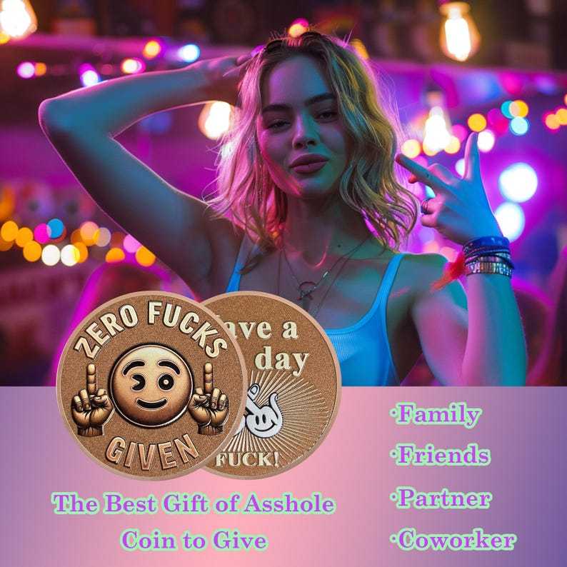 The front of this “Asshole Coin” makes a bold and cheeky statement with a playful emoji and unapologetic attitude. Featuring a winking smiley face flanked by two hands flipping the middle finger, this design embodies the ultimate carefree, "Zero Fucks Given" mindset. The emoji adds a touch of humor to the rebellious message, making it perfect for those who embrace their unapologetic nature with a sense of fun.